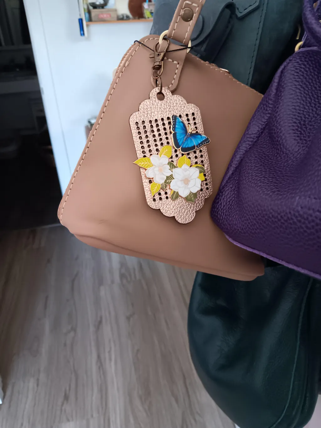 I bought the "Woody" Latte leather bag charm and it is perfect on my PLG Coldbrew Montana tote. It has just the right amount of sparkle to catch the eye.