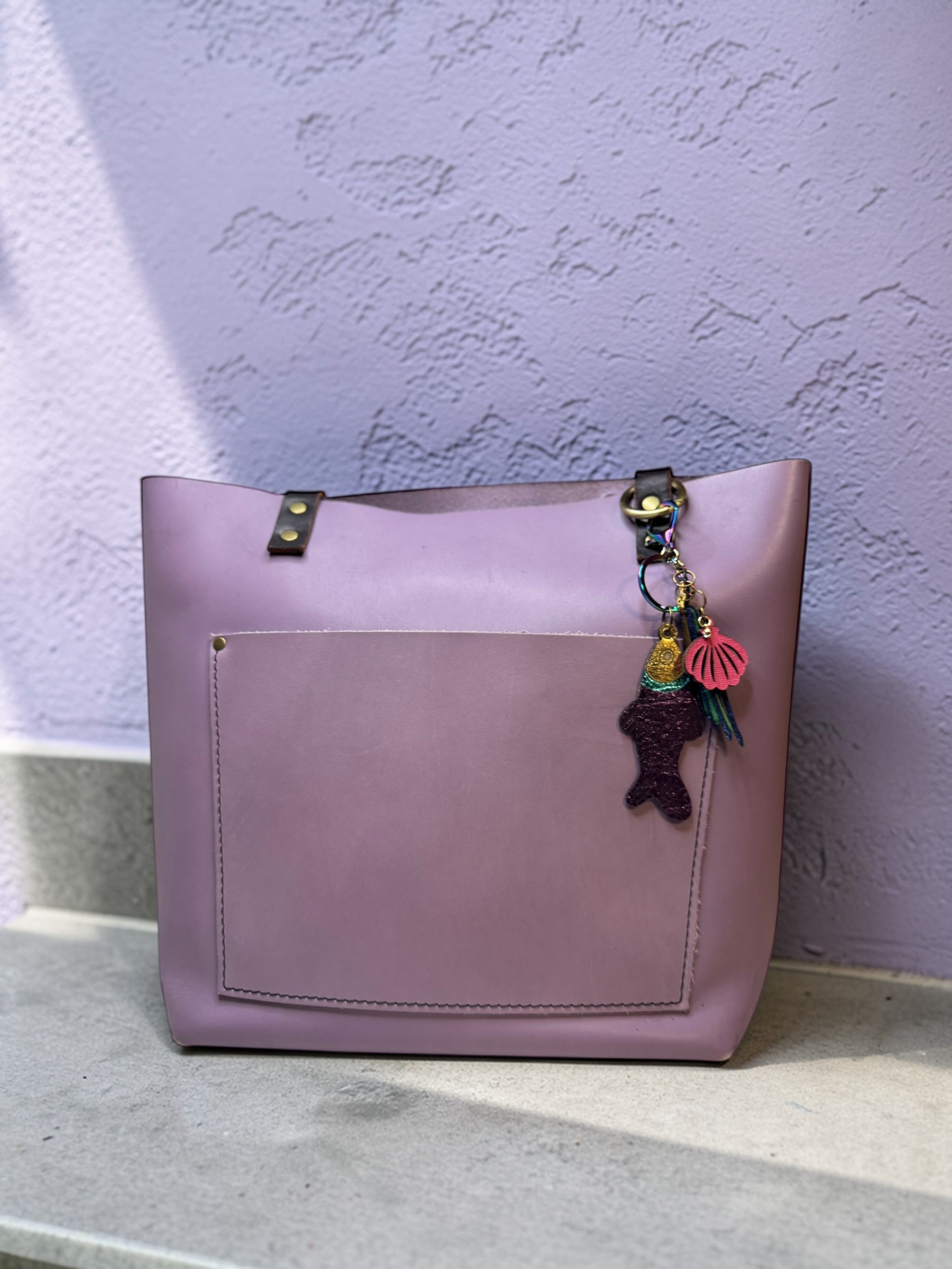 Each charm is handmade in small batches using high-quality materials, including genuine leather accents, making every piece unique. Designed to clip easily onto your favorite handbag, tote, or keyring, these charms add a playful yet polished coastal touch.