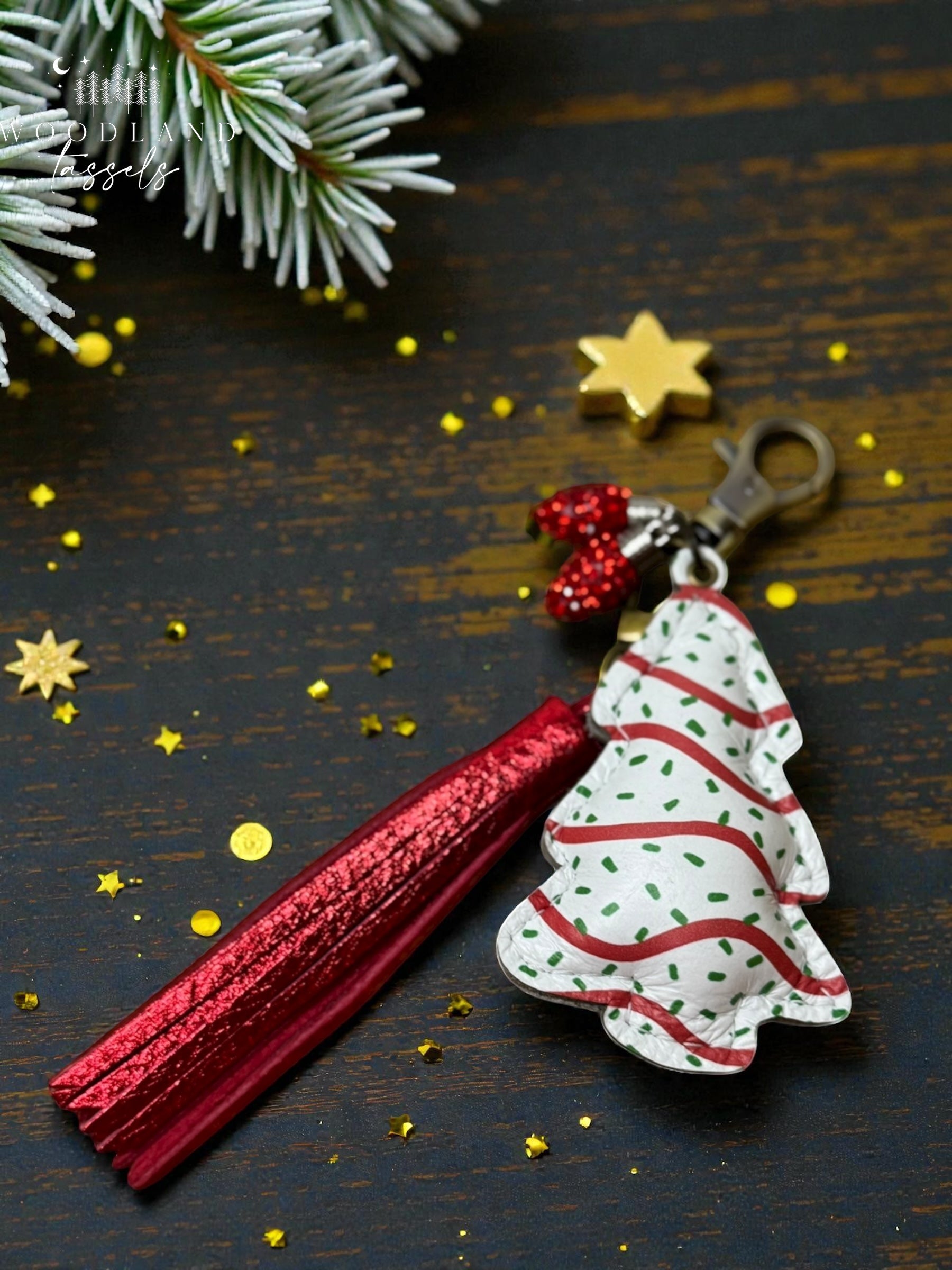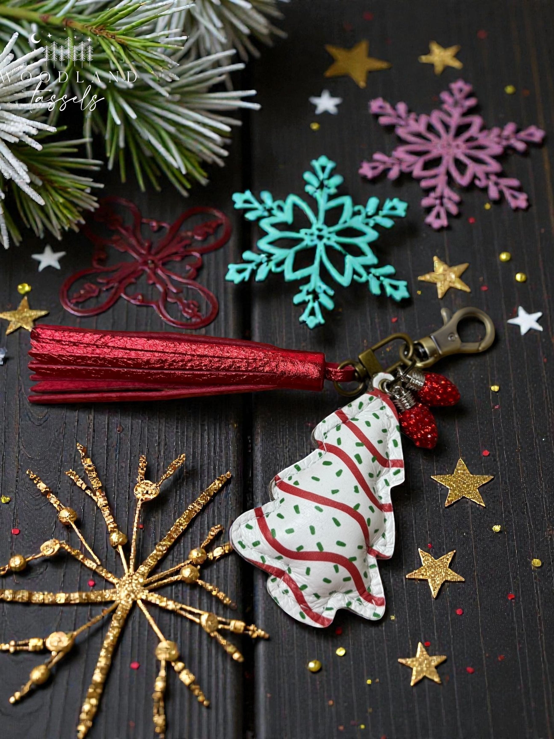 Treat yourself to a little something sweet and jolly with our handcrafted Sweet Tree Leather Purse Charms — a celebration of the season, a perfect bag charm or keychain. designed and made in small batches in our woman-owned Washington State studio.NOTE: The holiday accent metal charms (sparkle Christmas lights) may be different than pictured. Stock was limited on this item from my supplier, and will need to replace with a different style of accent metal charm for some orders. These are pre order, made to order items. Orders place week of 12/4 will begin to ship 12/9.