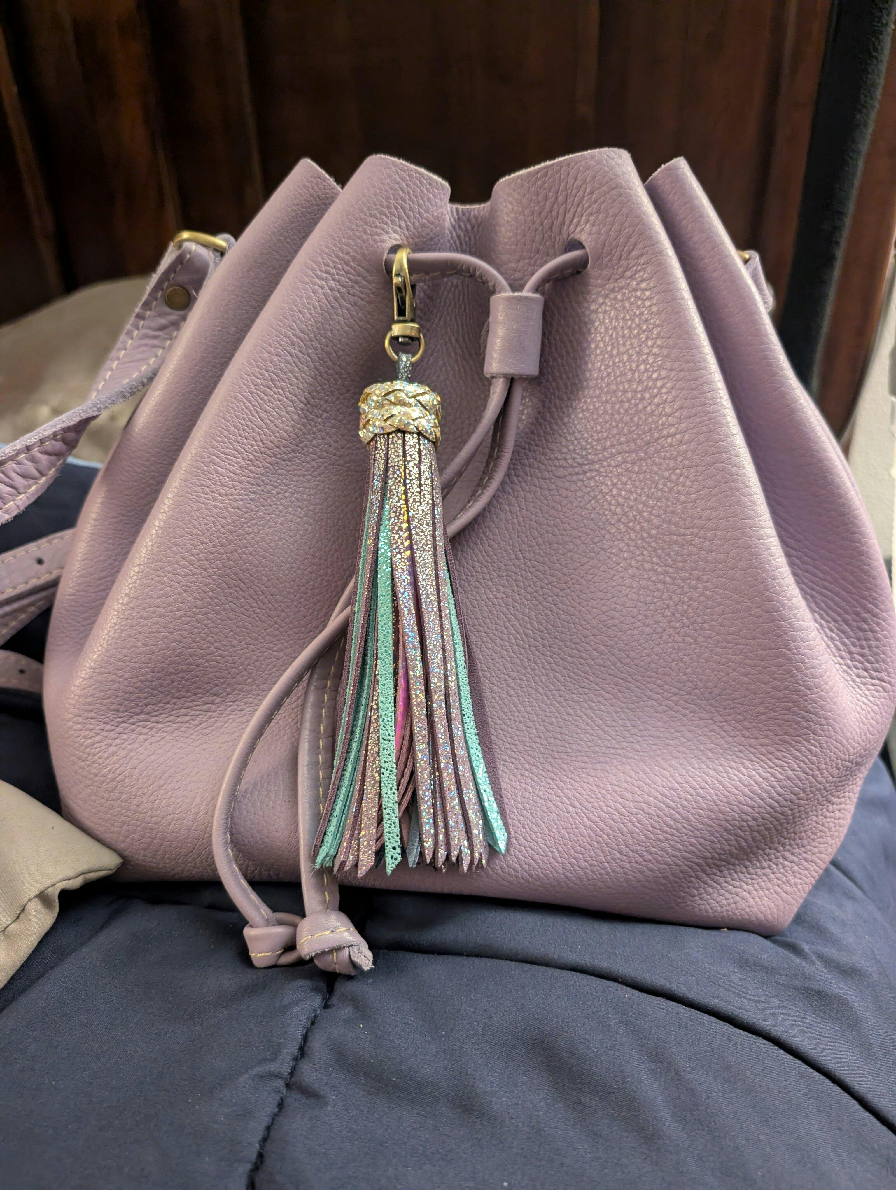 Make a statement with the Cascade Tassel, a stunning Woodland Tassels original handcrafted in our woman-owned shop in Washington State, USA! This premium leather purse charm adds a bold and stylish accent to your favorite handbag. Available in extremely limited quantities, with only one created, the Cascade Tassel is the perfect way to express your unique style.